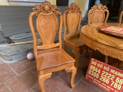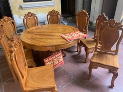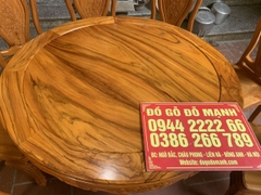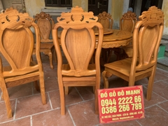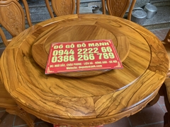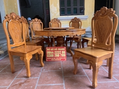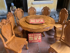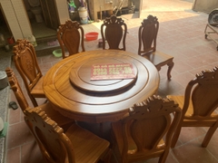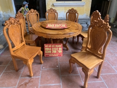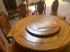 Bộ bàn ghế ăn tròn gỗ gõ đỏ 8 ghế hoa lá tây ván tràn, mâm xoay !