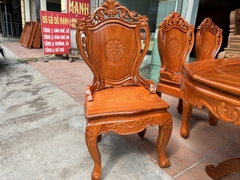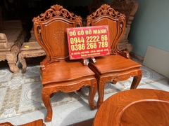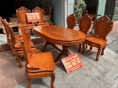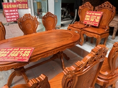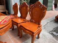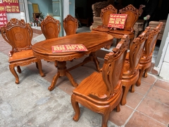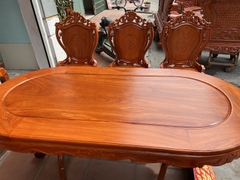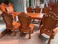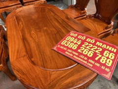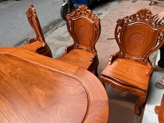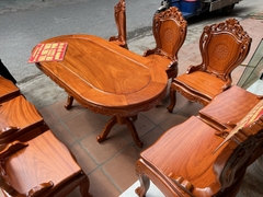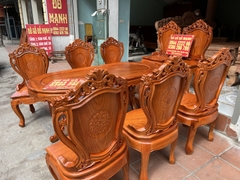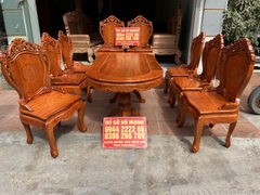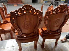 Bộ bàn ghế ăn vòm 8 ghế đục 2 mặt hoa lá tây ván tràn gỗ gõ đỏ