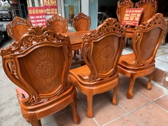 Bộ bàn ghế ăn vòm 8 ghế đục 2 mặt hoa lá tây ván tràn .