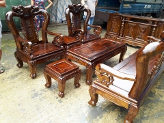 Bộ bàn ghế giả cổ trạm đào gỗ tràm lõi