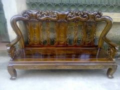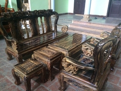 Bộ bàn ghế giả cổ trạm đào gỗ tràm lõi - hàng phun PU giả mun - giả hương cực đẹp !