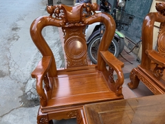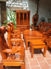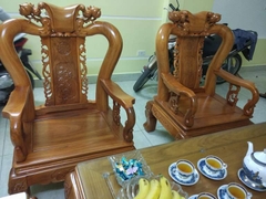 Bộ bàn ghế giả cổ trạm quốc đào gỗ gõ đỏ