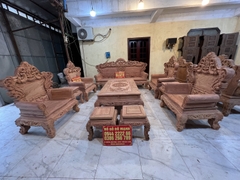 Bộ Bàn Ghế Hoàng Gia Louis Trơn Siêu Víp Gỗ Hương Đá 10 Món