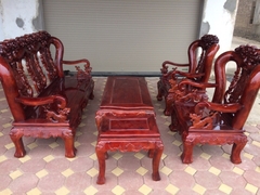 Bộ Bàn Ghế Minh Quốc khảm hoa lá tây gỗ xà cừ tay 12