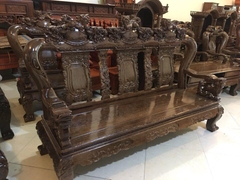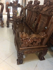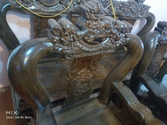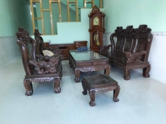 Bộ bàn ghế nghê 3 đầu - mẫu mã phong thủy phù hợp với mọi nhà - vân gỗ mun cực kì nhiều, tạo nên những đường nét tuyệt đẹp !
