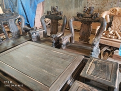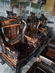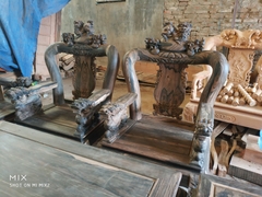 Bộ bàn ghế nghê đỉnh gỗ mun lào