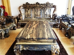-- Bộ 10 món Gồm : ( 1 ghế dài - 4 ghế đơn - 1 bàn to - 2 đôn ngồi - 2 đôn kẹp ) giá Mộc = 230.000.000đ - --- Hoàn Thiện giá = 280.000.000