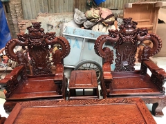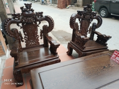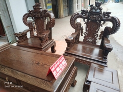 Bộ bàn ghế nghê đỉnh tay khuỳnh gỗ mun đuôi công