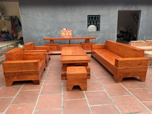 Bộ bàn ghế sofa đối kệ tivi gỗ hương đá .