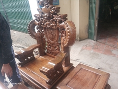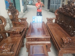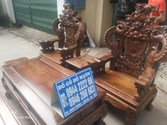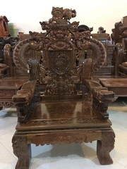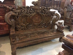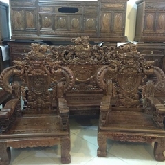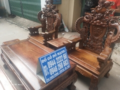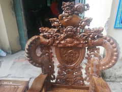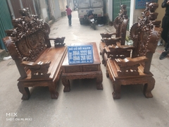 Bộ bàn ghế nghê đỉnh tay khuỳnh vách chữ C gỗ mun đuôi công