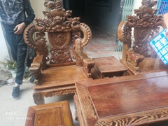 Bộ bàn ghế nghê đỉnh tay khuỳnh vách chữ C - mẫu mã phong thủy phù hợp với mọi nhà - vân gỗ mun cực kì nhiều, tạo nên những đường nét tuyệt đẹp !